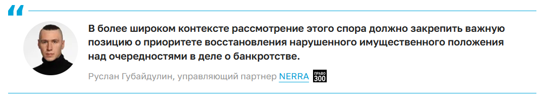Губайдулин ждет от ВС аналогичную позицию по разграничению текущих обязательств и обязательств по возврату средств из-за поворота исполнения, а также разъяснений о необходимости резервирования таких сумм.