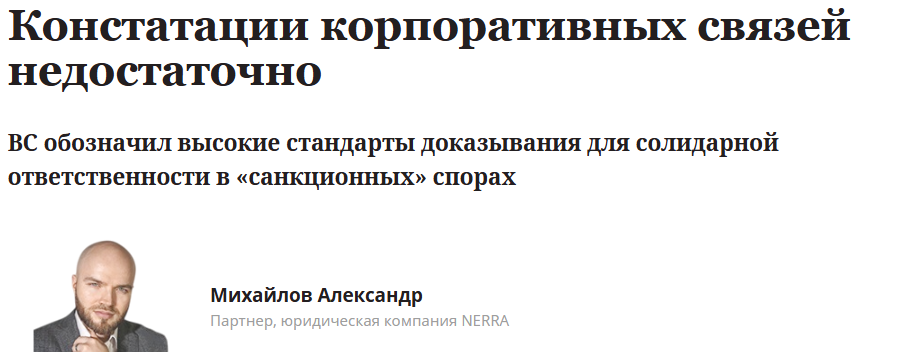 ВС обозначил высокие стандарты доказывания для солидарной ответственности в «санкционных» спорах